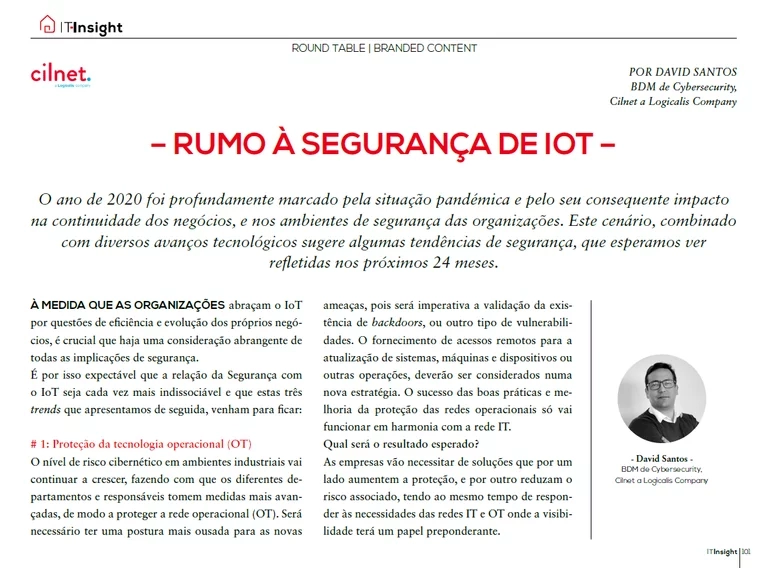 David Santos, BDM de Cybersecurity da Cilnet a Logicalis Company aborda a necessidade de confiança no IoT através da segurança, não apenas para que os processos de transformação digital possam ter êxito e ser otimizados, mas também para tirar o máximo partido das tecnologias de IoT.
