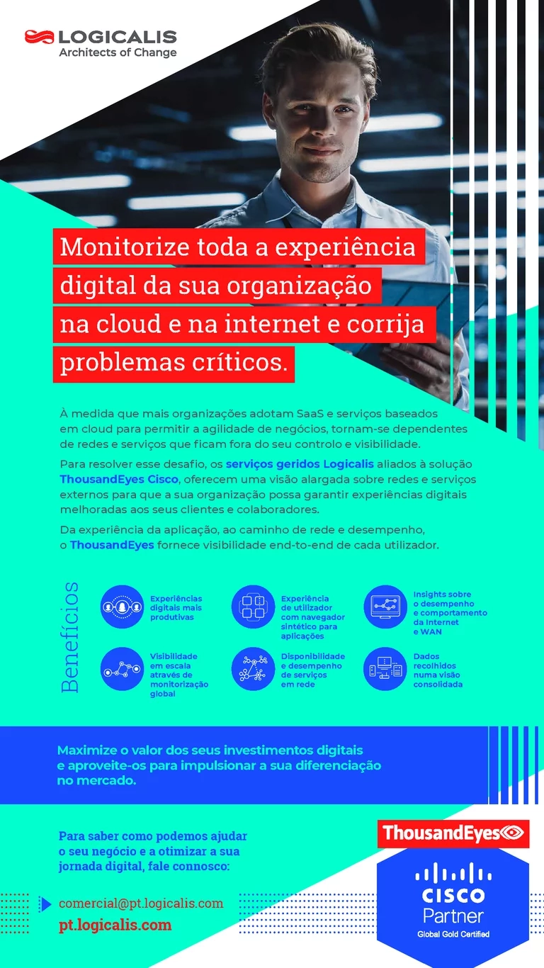 Os serviços Logicalis baseiam-se no portfólio Cisco para Full Stack Observability (FSO), um conjunto de ferramentas integradas numa única estrutura.