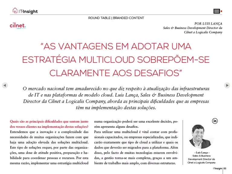 Luis Lança, Sales & Business Development Director da Cilnet a Logicalis Company, aborda as principais dificuldades que as empresas têm na implementação destas soluções.