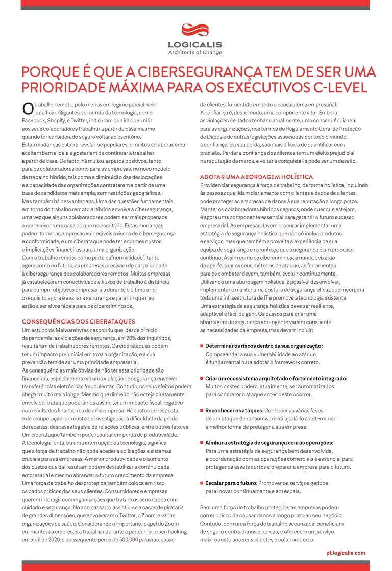 Mantenha o seu negócio a fluir, através do suporte/ manutenção Logicalis e proteja os ativos da sua empresa das ameaças cibernéticas potenciadas pelo COVID-19.
